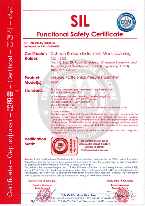 壓力/差壓變送器SIL3安全認(rèn)證