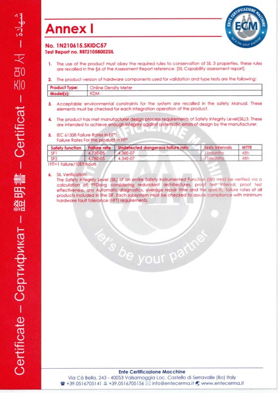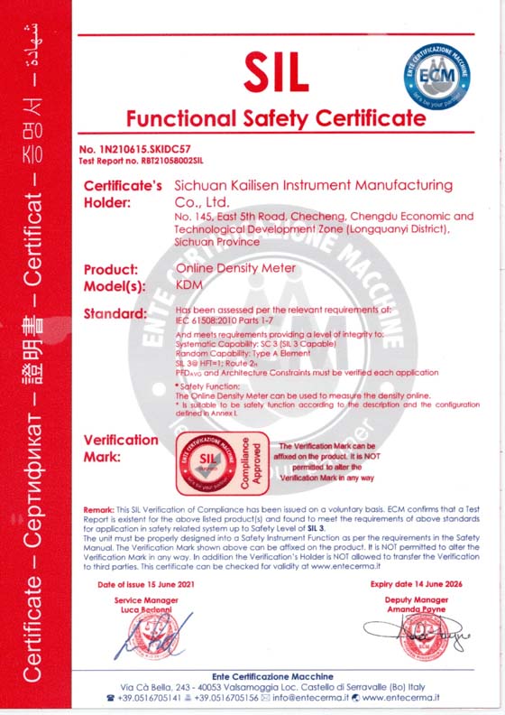 在線密度計(jì)SIL3安全認(rèn)證