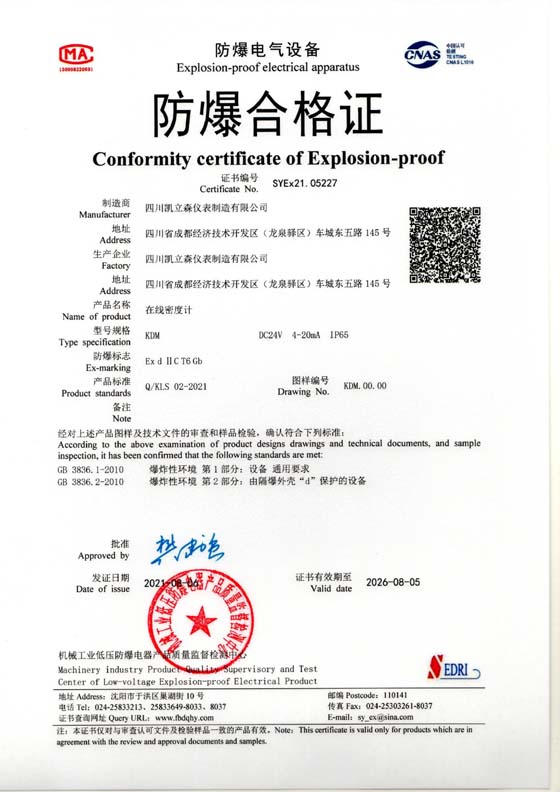 在線密度計(jì)防爆認(rèn)證