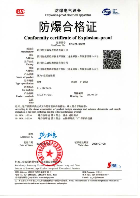 壓力/差壓變送器防爆認(rèn)證
